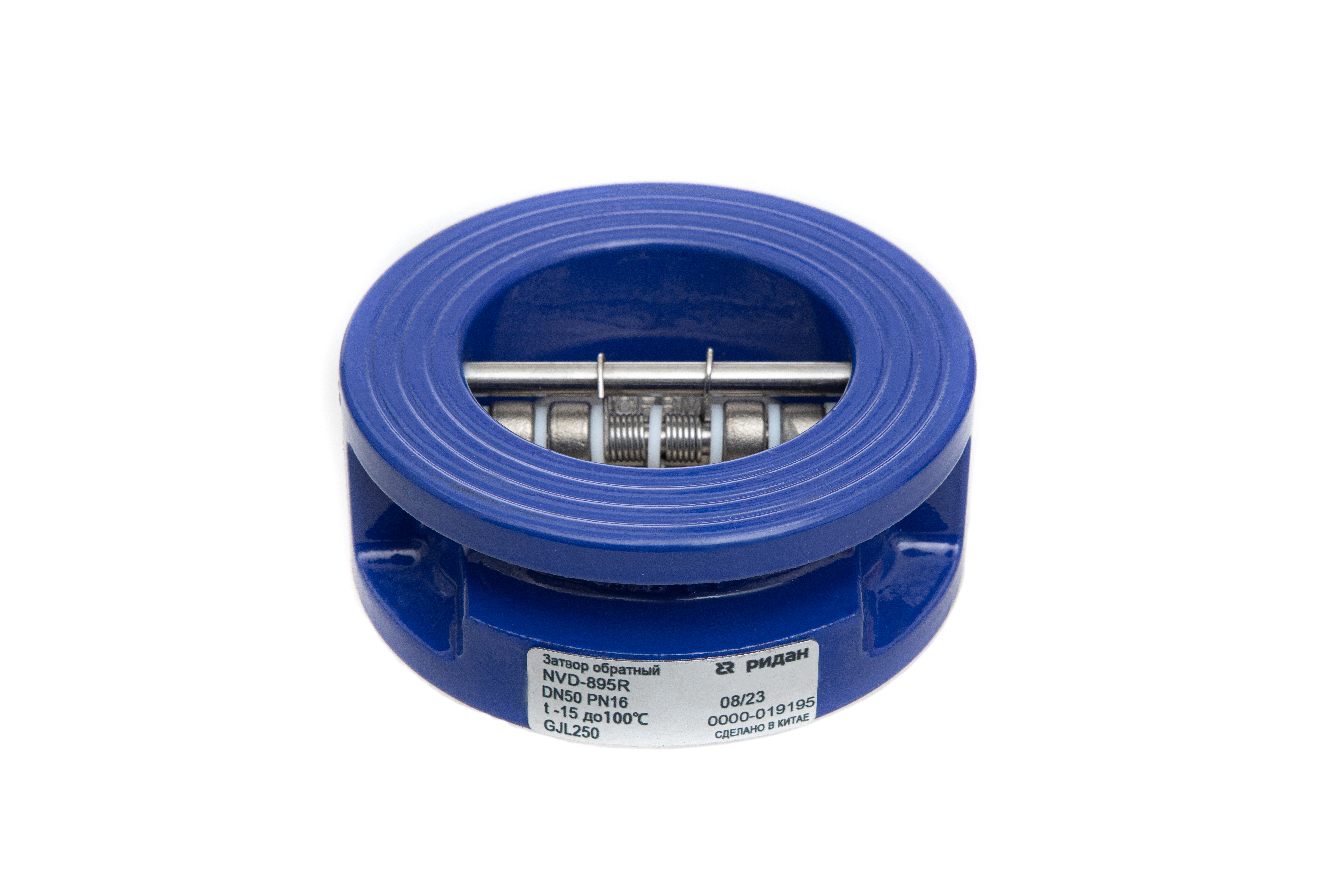 Ридан NVD-895R 082X8505R — Затвор обратный межфланцевый пружинный двустворчатый, PN16, DN400, чугун GJL250